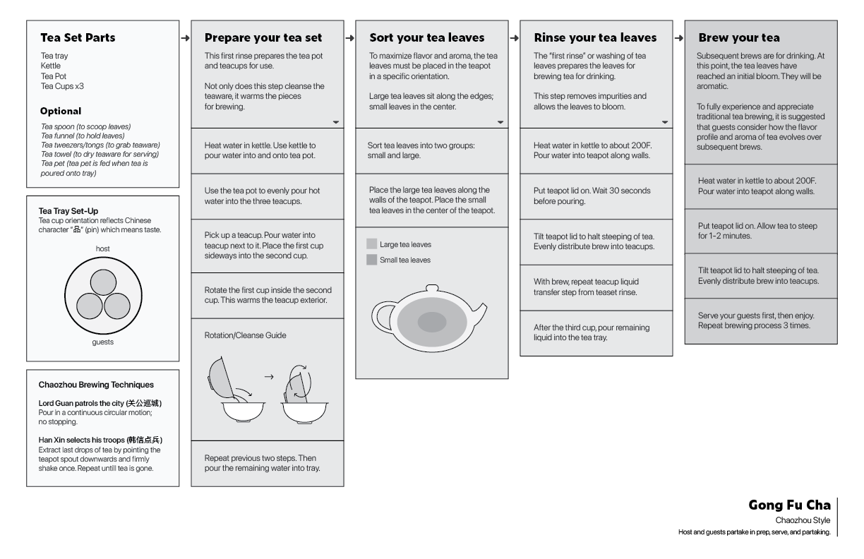 Gong Fu Cha is the practice of traditional Chinese tea brewing styles. The term roughly translates to skillfully making tea; Gong Fu (Kung Fu) translates to skillful work. For my design, I focused on small pot brewing.