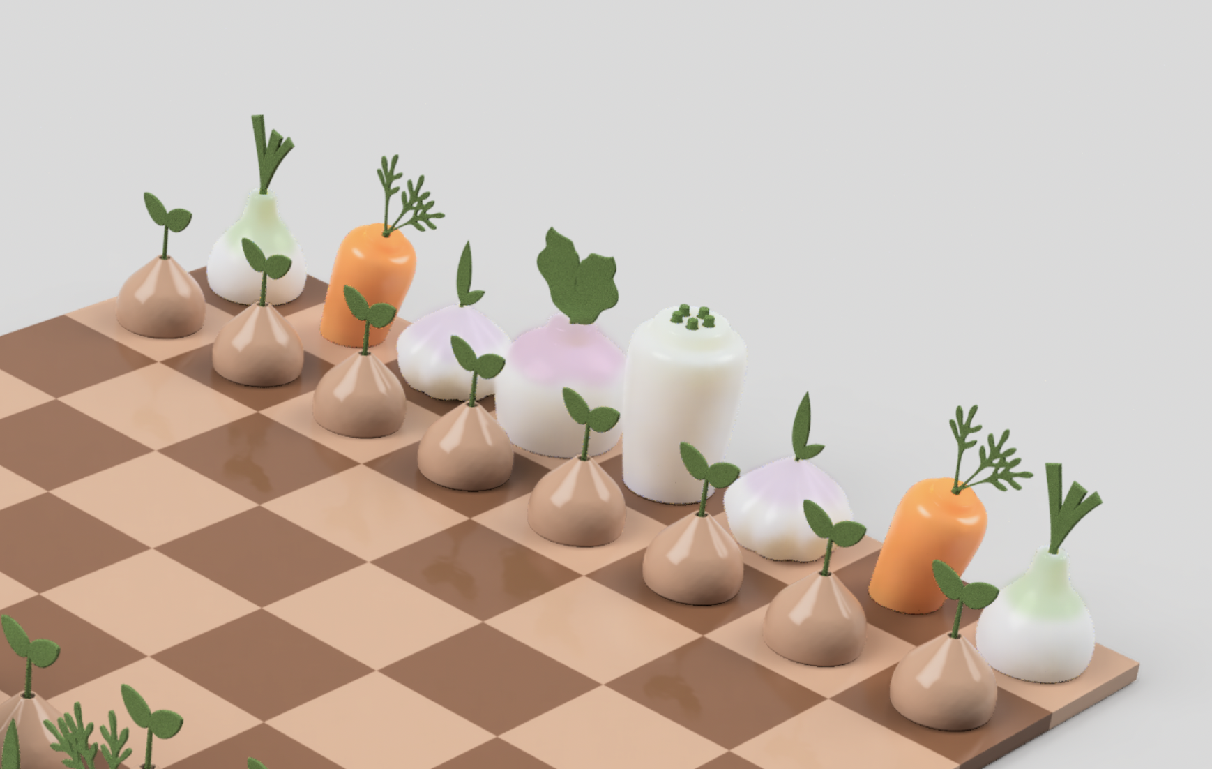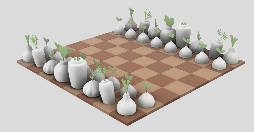Magnets located in the base of the chess pieces create resistance to mimic uprooting/harvesting the vegetables. The leaf/stem pieces “stretch” by leaving space for the stem to travel upwards, before catching on the housing and pulling the body of the piece off the board.