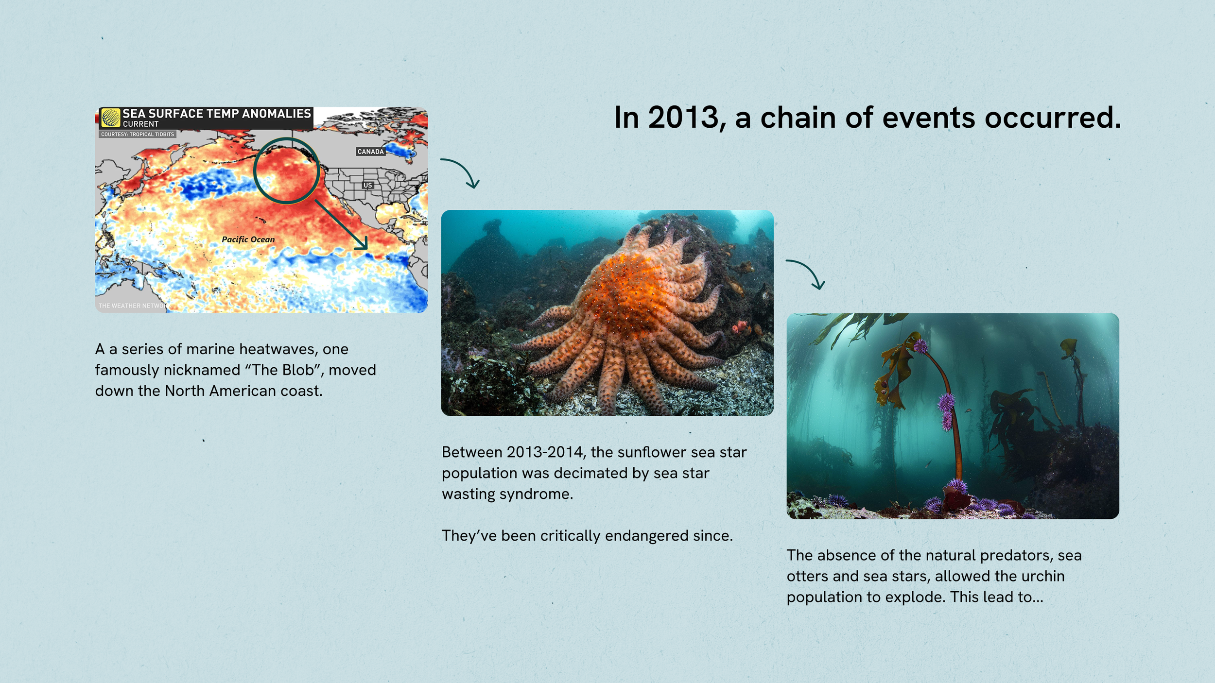 What: A work in progress passion project about educating on kelp forest decline and the greater impacts of climate change on coastal ecosystems.